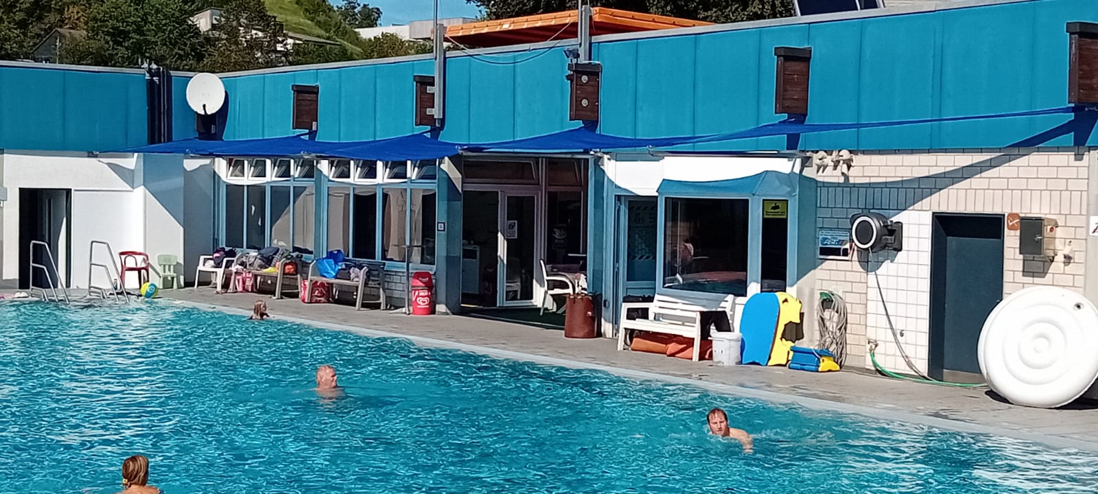 Gerade die jüngeren Badegäste waren auf dem Spielplatz noch unzureichend vor der Sonne geschützt. Gleiches galt auch für die Cafébesucher und die Badeaufsicht am Beckenrand. Zum Schutze der großen und kleinen Besuchern und Mitarbeitern des Freibades wurden mit der Förderung als Kleinprojekt zwei Sonnensegel angeschafft und angebracht.